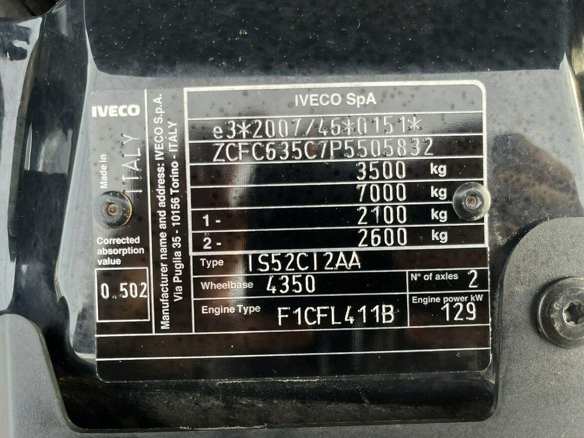 Samochód na podwoziu 5.2T przerobiony fabrycznie na 3.5T - IVECO.